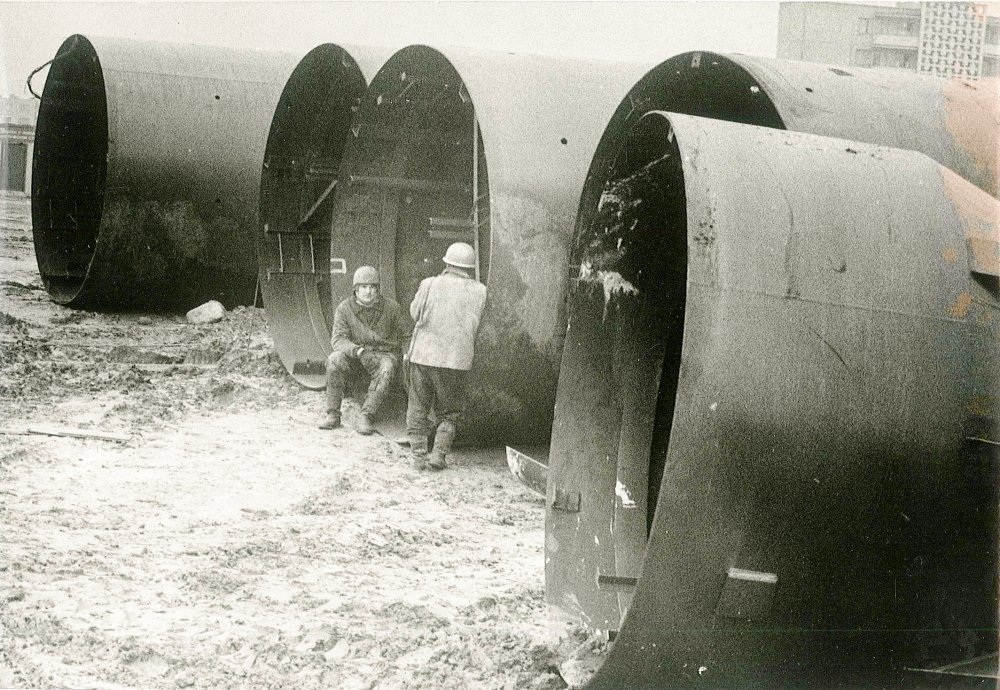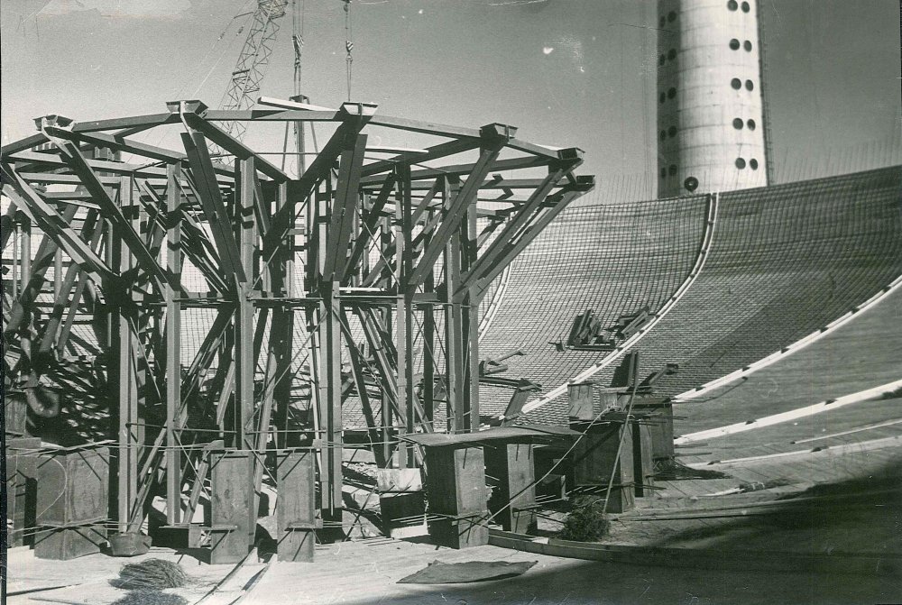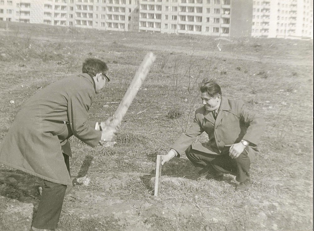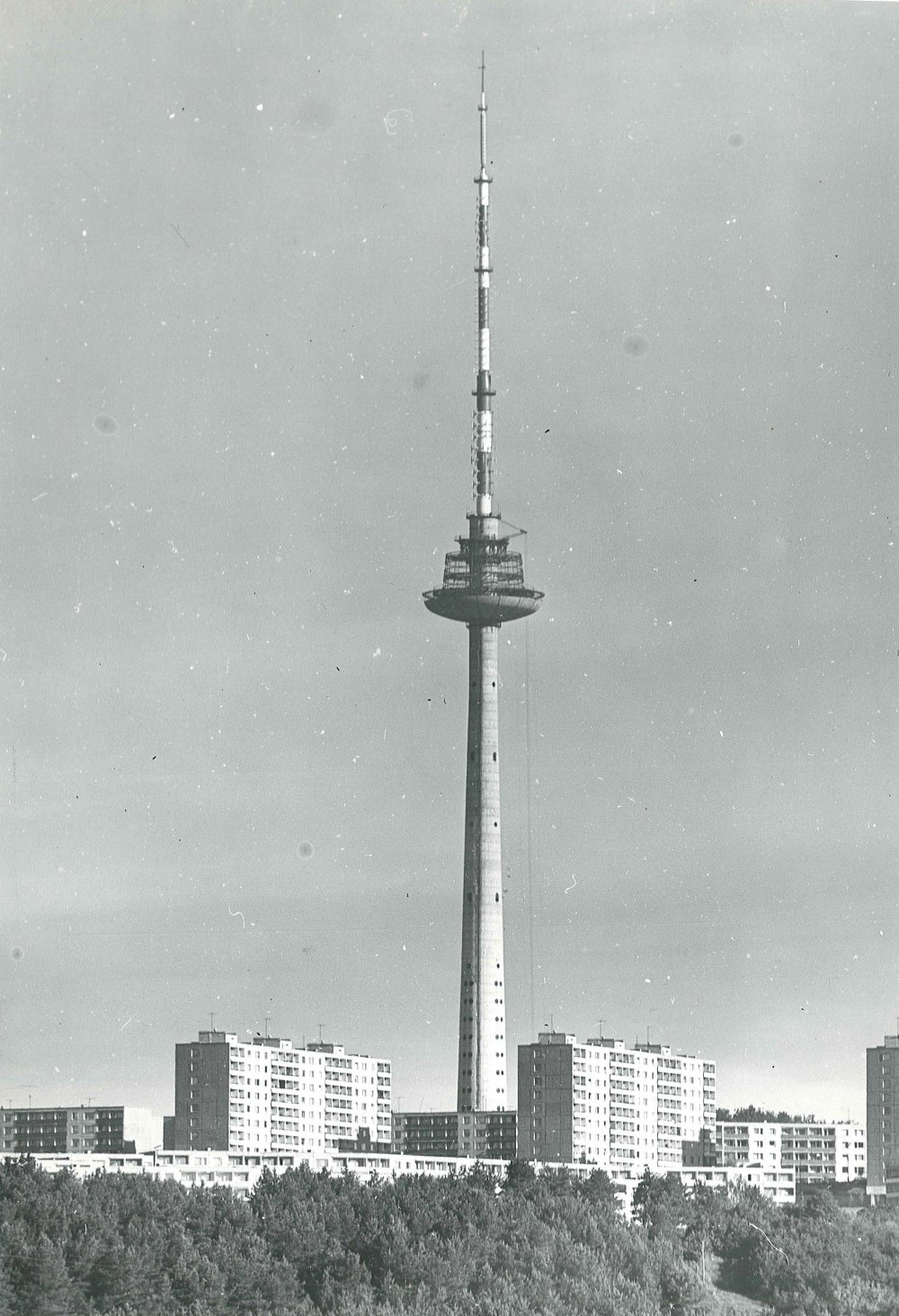 Pažymėtas Televizijos bokšto centras sklype, pradedami kasimo darbai. TV bokšto vieta buvo pasirinkta Karoliniškių kalvoje, nes ji yra 60 metrų aukščiau už kairiajame Neries krante esantį Vilniaus senamiestį. Prieš statant bokštą buvo iškasta didžiulė duobė, į ją supilta apie 20 tūkst. tonų betono. Bokšto inžinerinės konstrukcijos stabilumas pagrįstas tuo, kad apačioje jis yra sukabintas su milžiniška betono uola.