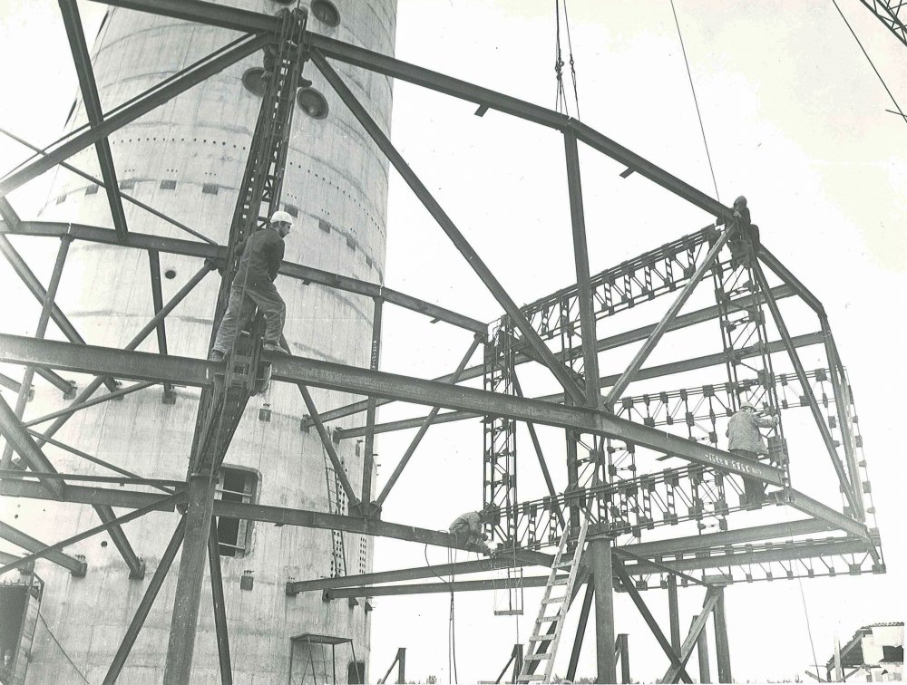 Pradedamas stiebo betonavimas. Vykstant betonavimo darbams, rengiamos žemutinės lifto šachtos, ruošiamos ir dažomos metalinės dalys; montuojama viršutinė stiebo dalis, konstruojama bokšto taurė; ant žemės, aplink bokštą, surenkamas metalinis karkasas.