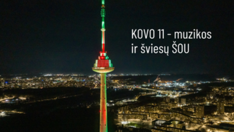 Lietuvos Nepriklausomybės atkūrimo dieną 19.30 val. ir 20.30 val, kviečiame vilniečius ir sostinės svečius išvysti Vilniaus televizijos bokšto šviesų šou pagal radijo bangomis transliuojamą muzikinį kūrinį – Vytauto Kernagio atliekamą dainą „Šaukiu aš tautą“ (eil. B. Brazdžionis, muz. G. Abarius). Kad ir kur bebūtumėte, muzikos ir šviesų šou stebėkite iš automobilio, buto, namo, biuro –
