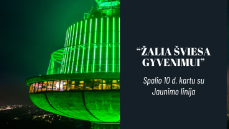 GREEN LIGHT FOR LIFE – this is the name of the national campaign organized by “Youth Line” for the 5th year, in which the TV Tower also participates. On October 10 at 7:00 PM, buildings, sites, windows, and spaces across Lithuania in cities, communities, organizations, businesses, and homes will be illuminated in green to show