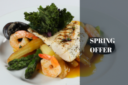 + delicious zander steak with seafood;