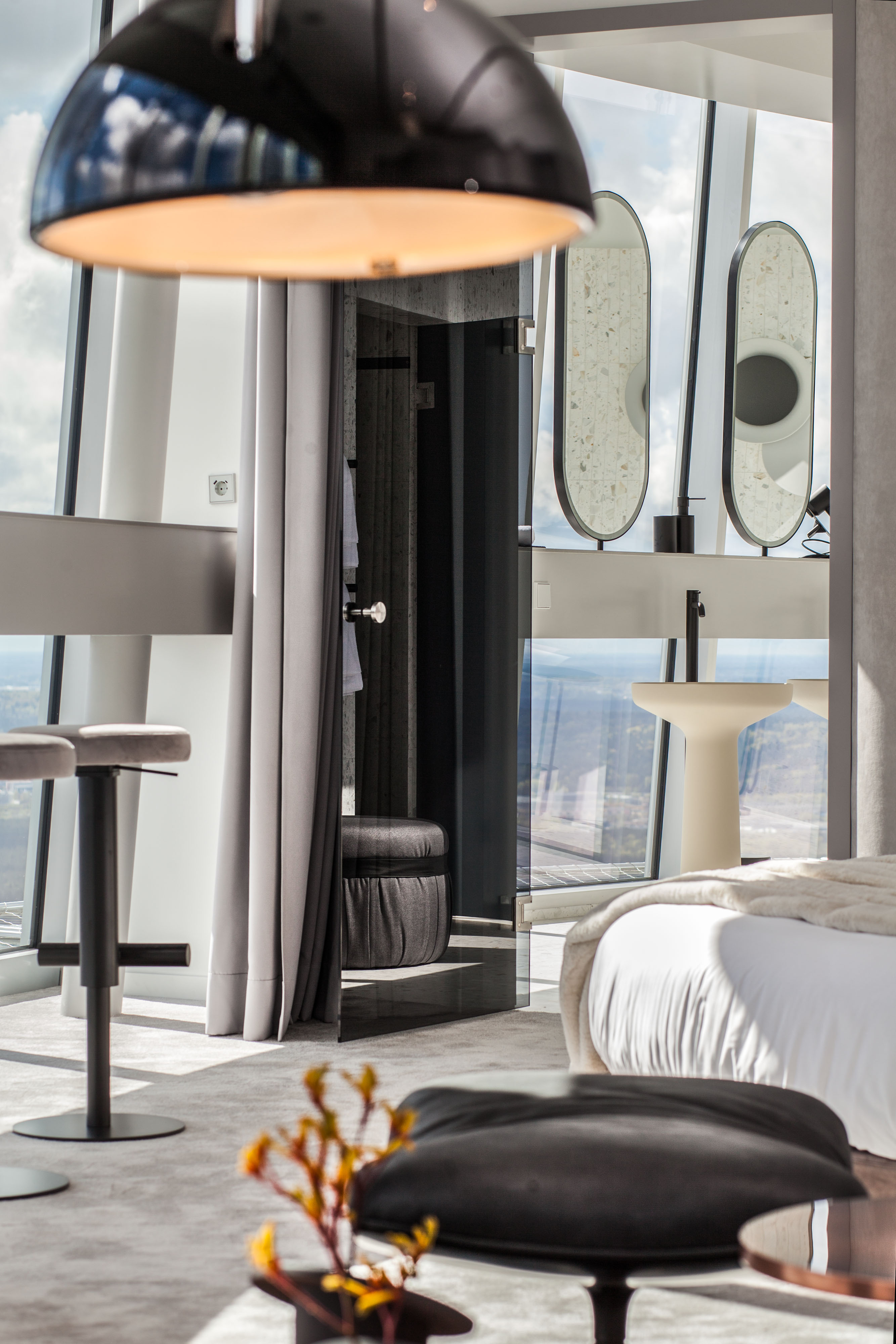 The best stories are the ones we experience for ourselves! Luxury, authentic design and unique city horizons through the windows. Welcome to CLOUDS, an exclusive place for your rest in the tallest building in the country. We have two double apartments. Those who want to explore the quiet Vilnius are invited to the RIVER apartments, where the windows offer unique views of the Old town of the capital and the bend of the Neris river. CITY apartments will surprise you with an unexpected view transformation during the evening, when the city lights open the whole new perspective to the view, transforming Vilnius to a shining night metropolis.