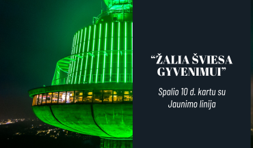 GREEN LIGHT FOR LIFE – this is the name of the national campaign organized by “Youth Line” for the 5th year, in which the TV Tower also participates. On October 10 at 7:00 PM, buildings, sites, windows, and spaces across Lithuania in cities, communities, organizations, businesses, and homes will be illuminated in green to show solidarity with the topic of mental health and the campaign organized by “Youth Line.”More information about the campaign: https://zaliasviesagyvenimui.lt/