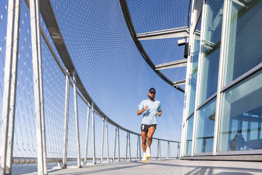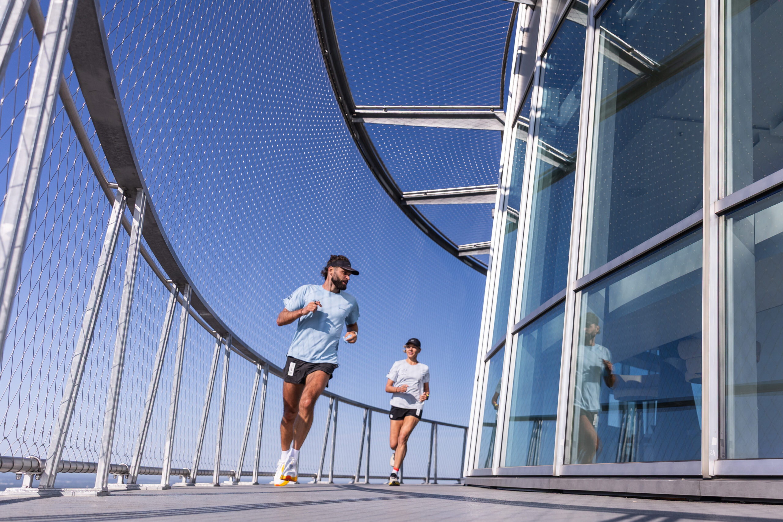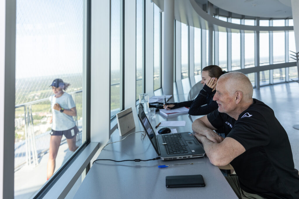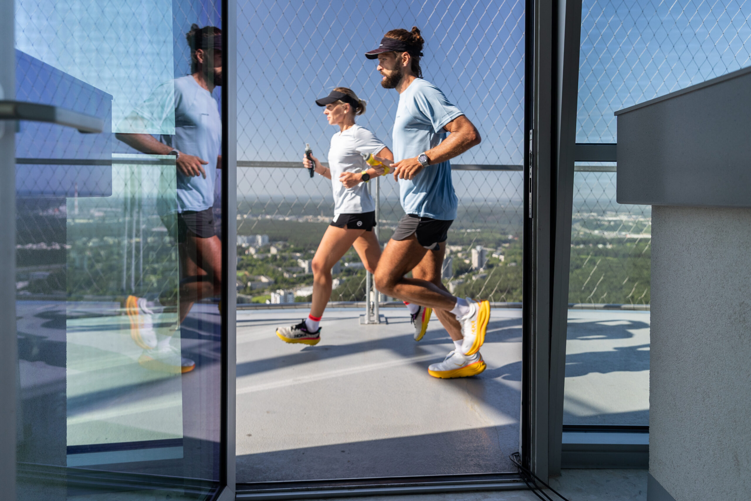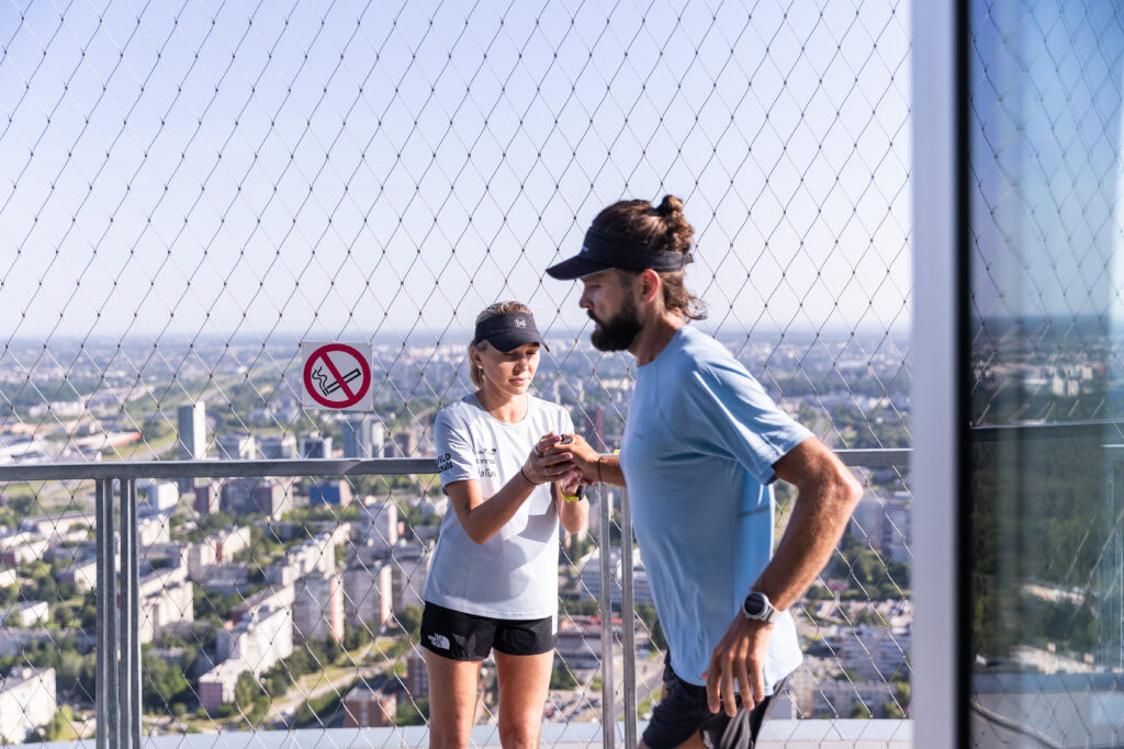 Sportininkas Vaidas Žlabys ant TV bokšto apžvalgos aikštelės, esančios 170 metrų aukštyje, siekė įveikti maratono distanciją – tai reiškia 540 ratų siaurame bokšto rate. Tuo tarpu Živilė Šerkšnaitė, buvusi „Vaikų linijos“ savanorė, nubėgo pusmaratonį – 270 ratų.